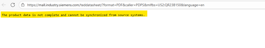 If you have a local Siemens representative contact information, reach out to them to provide you that information and fix the website link for the product datasheet that provides an error.